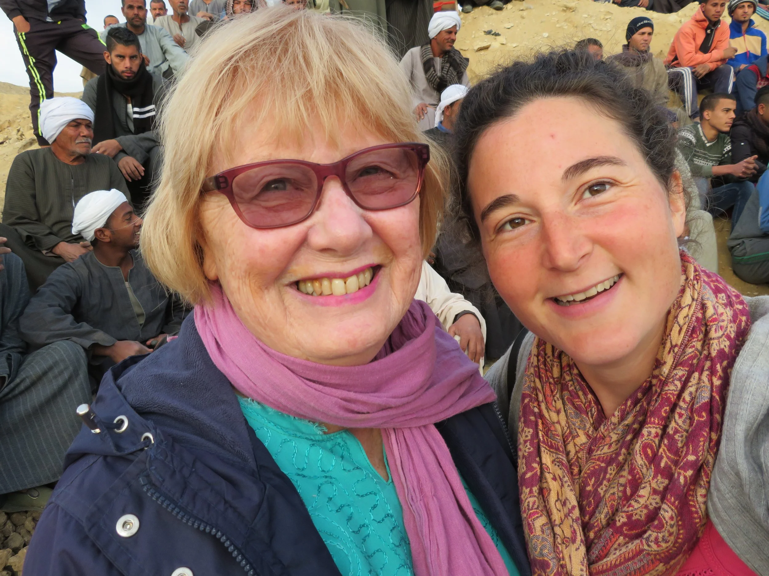 Photo: Valérie Angenot and a statue of Akhenaten, National Museum of Alexandria